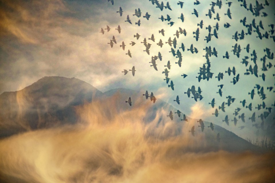 From between dwindling clouds