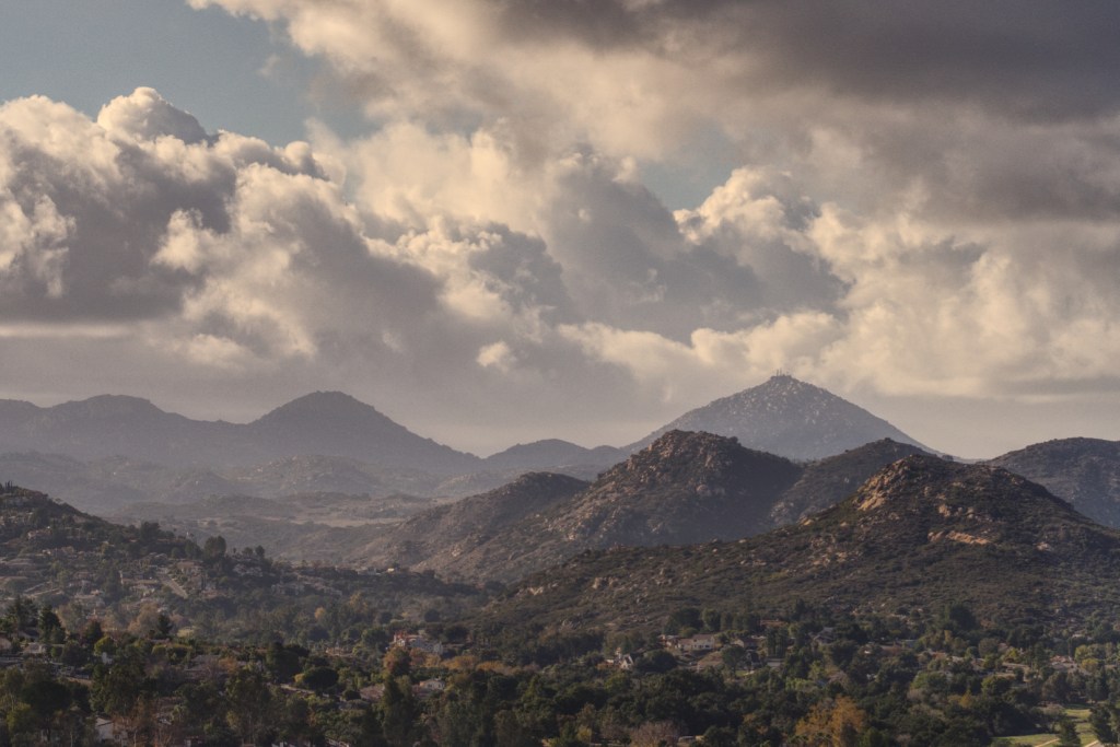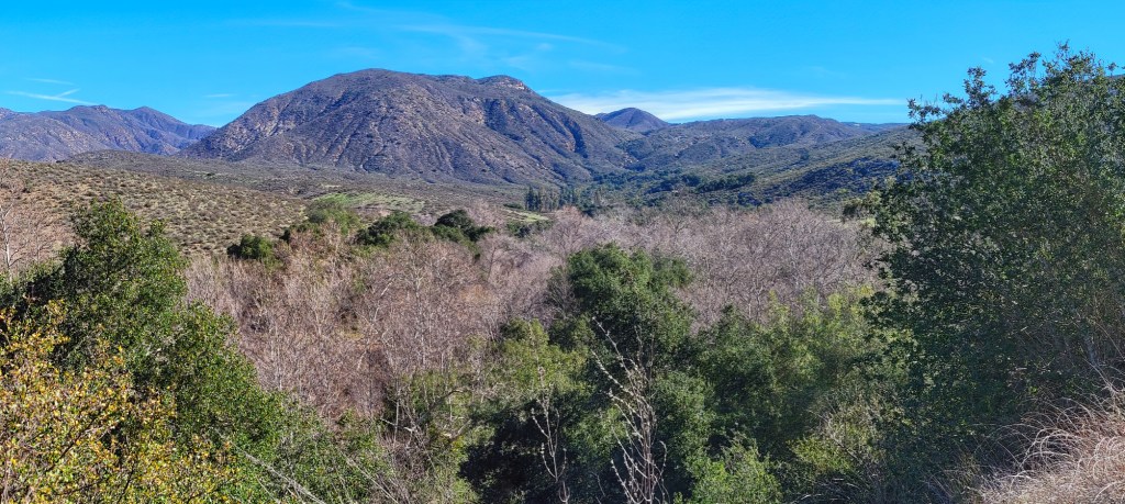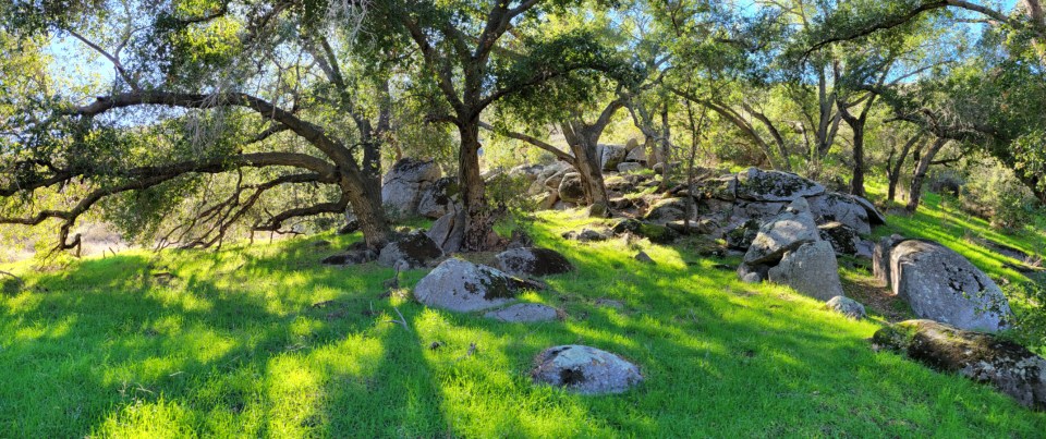 We hiked a little with our daughter near her home. There is a place called San Dieguito River Park near her house. It is just off highway 78, down a dirt road, then onto a narrow-paved road to the trailheads. The entire park is massive and we have explored only a small section. The cover photo is a phone panorama looking south through a stand of oak and rock outcropping.