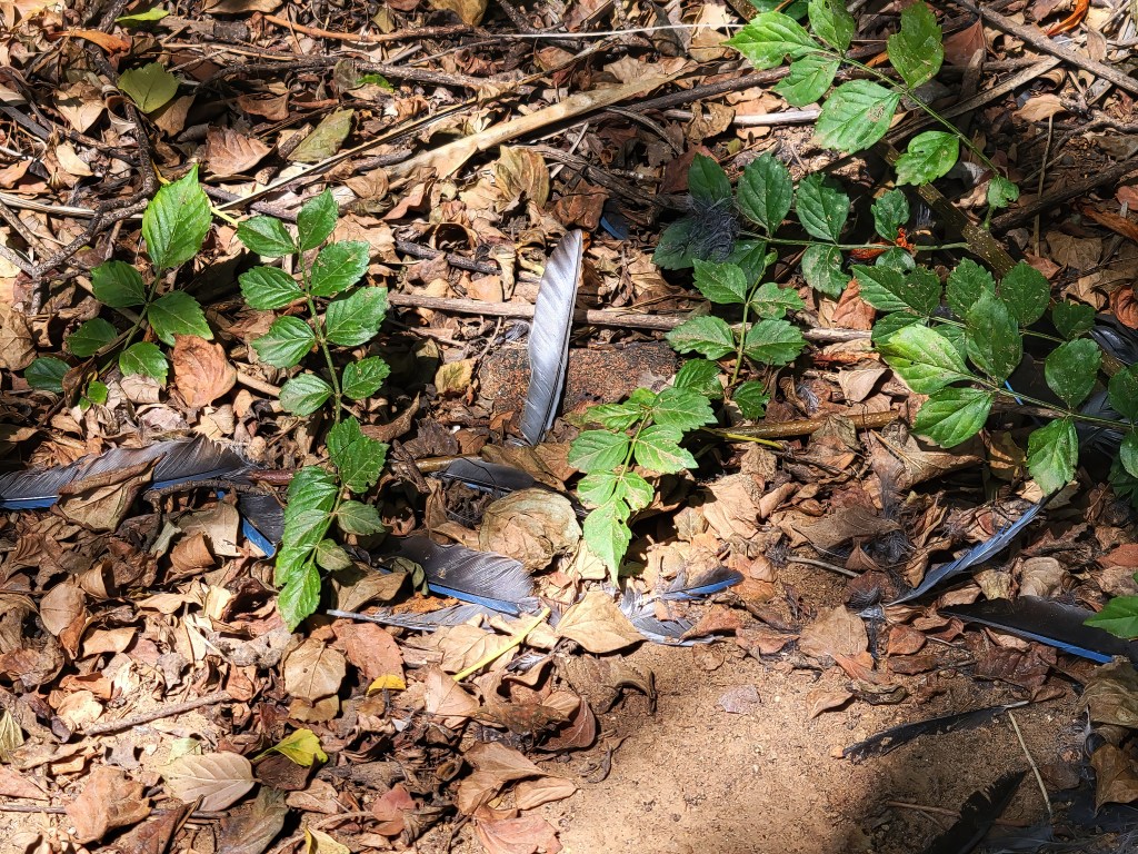 As I traversed the trail up the hill, the remnants of an altercation with one of the quail revealed itself.